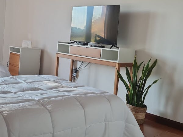 A cozy space for families. It has a main bedroom and two twin beds in the living room area, with a shared bathroom an a litlle garden view balcony. Services included: Wi-Fi | mini-bar | Maid Service | 46-inch Smart TV.
